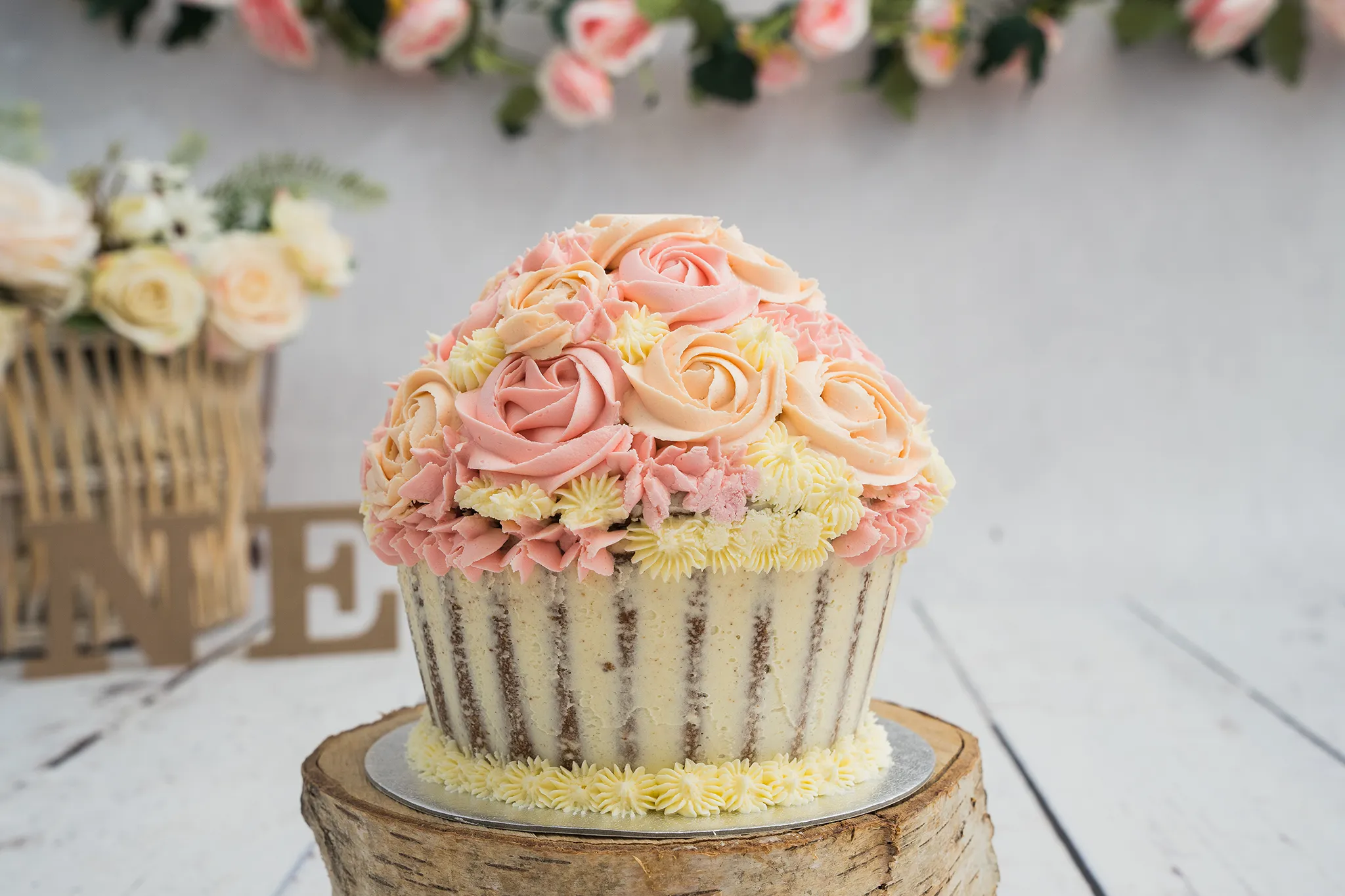 We can provide the cake for +£30, or you’re welcome to bring your own. Cakes with plenty of buttercream tend to work best for that classic cake smash mess.